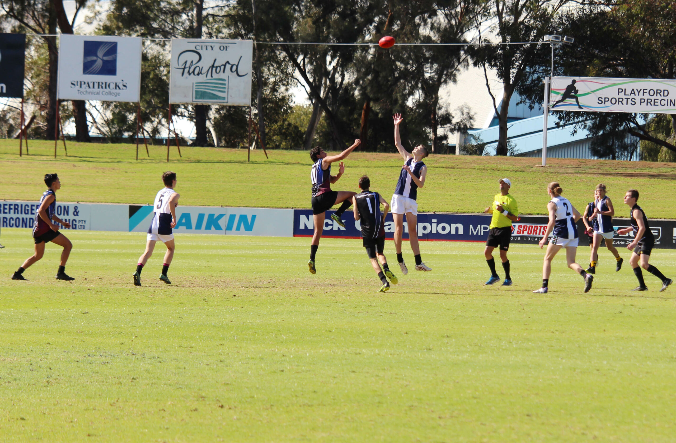 StPatsTech boys took on Playford International at My Money House Oval (Central Districts Football Club) in Elizabeth. StPatsTech started the first quarter strongly with the ball being delivered well into the forward line. By the quarter time bell, StPatsTech was four goals up with a strong start to the second quarter.