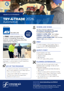 A taster program for Year 8 to 10 students looking to explore a career pathway in the automotive industry.
